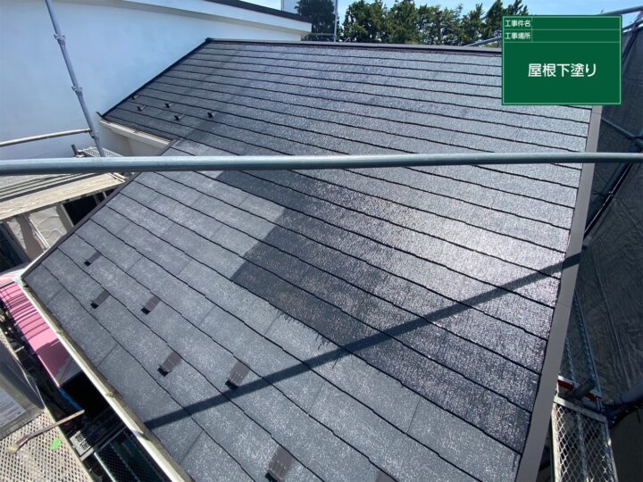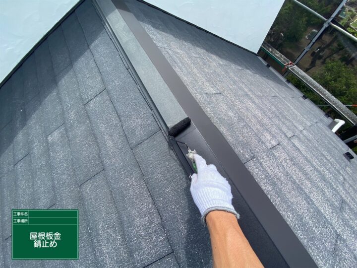 屋根の板金部分は下地処理(ケレン)作業後に錆止め塗料を塗布します。