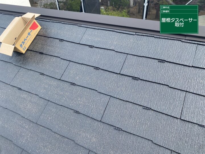 下塗り後に雨漏り防止のためのタスペーサーという部材を設置いたします。