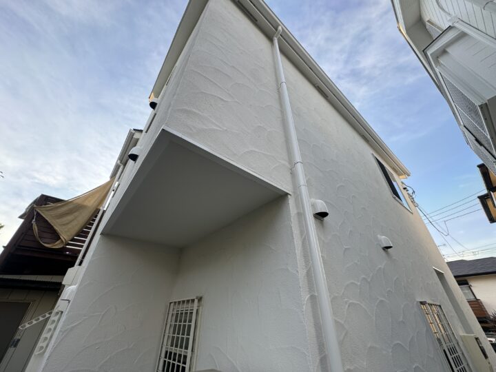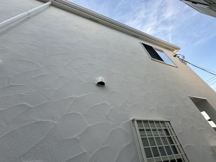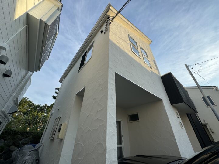 今回は、外壁にジョリパットという意匠性の高い塗り壁材が使用されていました。このような外壁の塗り壁材は湘南・西湘地域では比較的採用しているお家が多い外壁の種類になります。