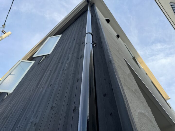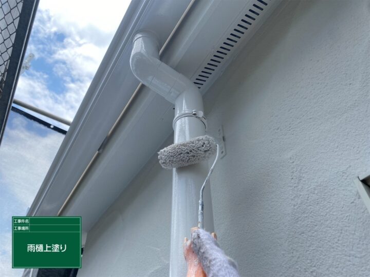 樹脂製の雨樋もラジカルハイブリッド塗料を使用して塗り替えます。