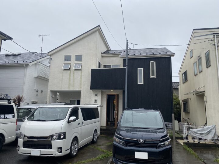 藤沢市辻堂 S様邸 モルタル塗り壁外壁(ジョリパット仕上げ)・スレート屋根 外壁艶消し塗装・屋根フッ素塗装工事