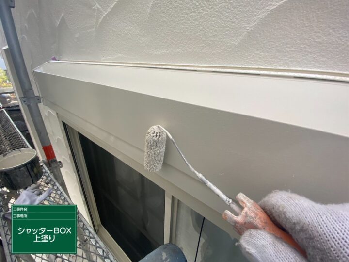 鋼板製のシャッターBOXも下地処理をして錆止め塗料を塗り、中塗り、上塗りで仕上げます。