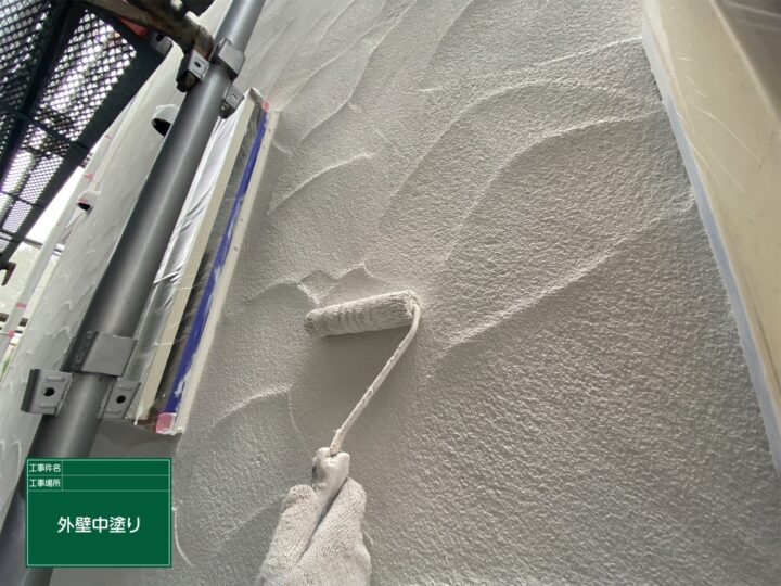 上塗り(中塗り)を2回塗ることで塗膜の厚みを確保し、塗料の性能や耐候性を100%引き出します。